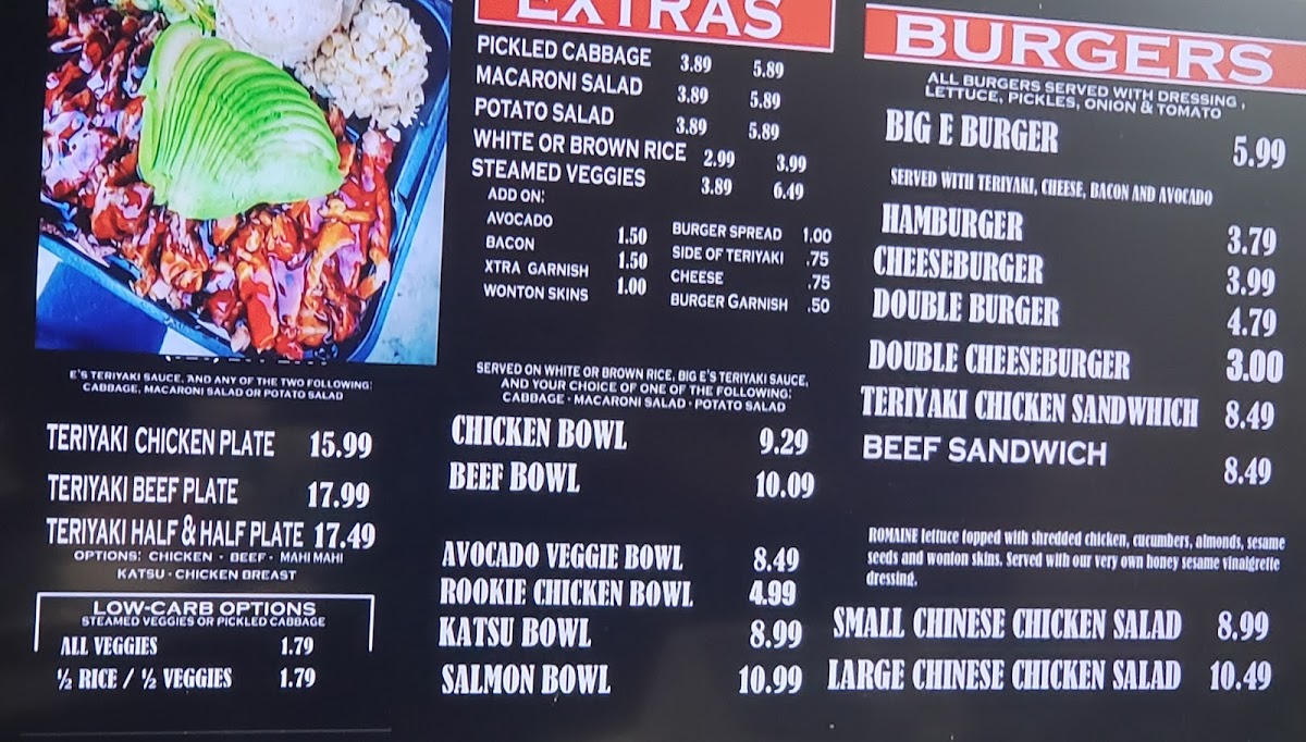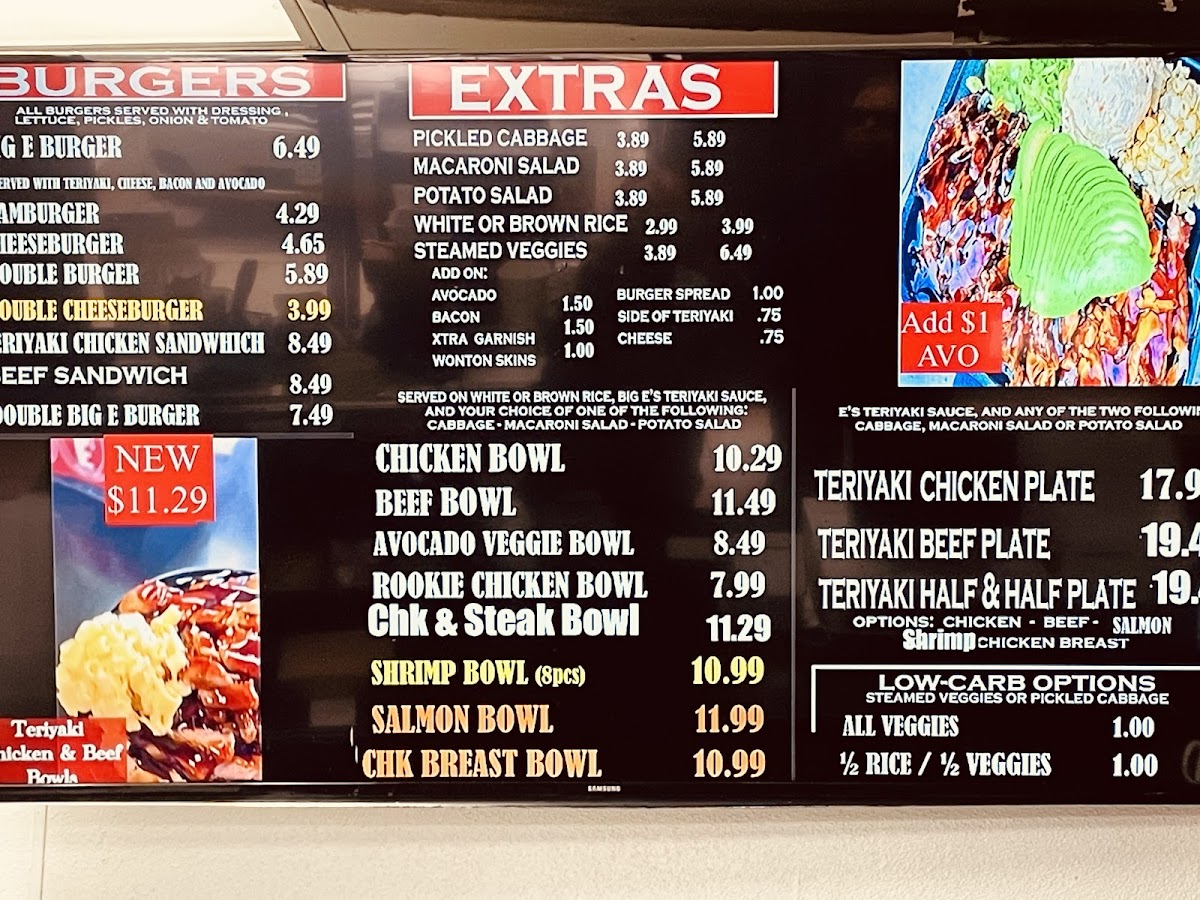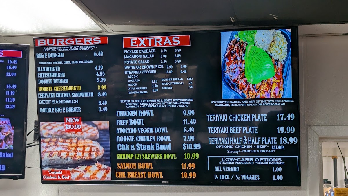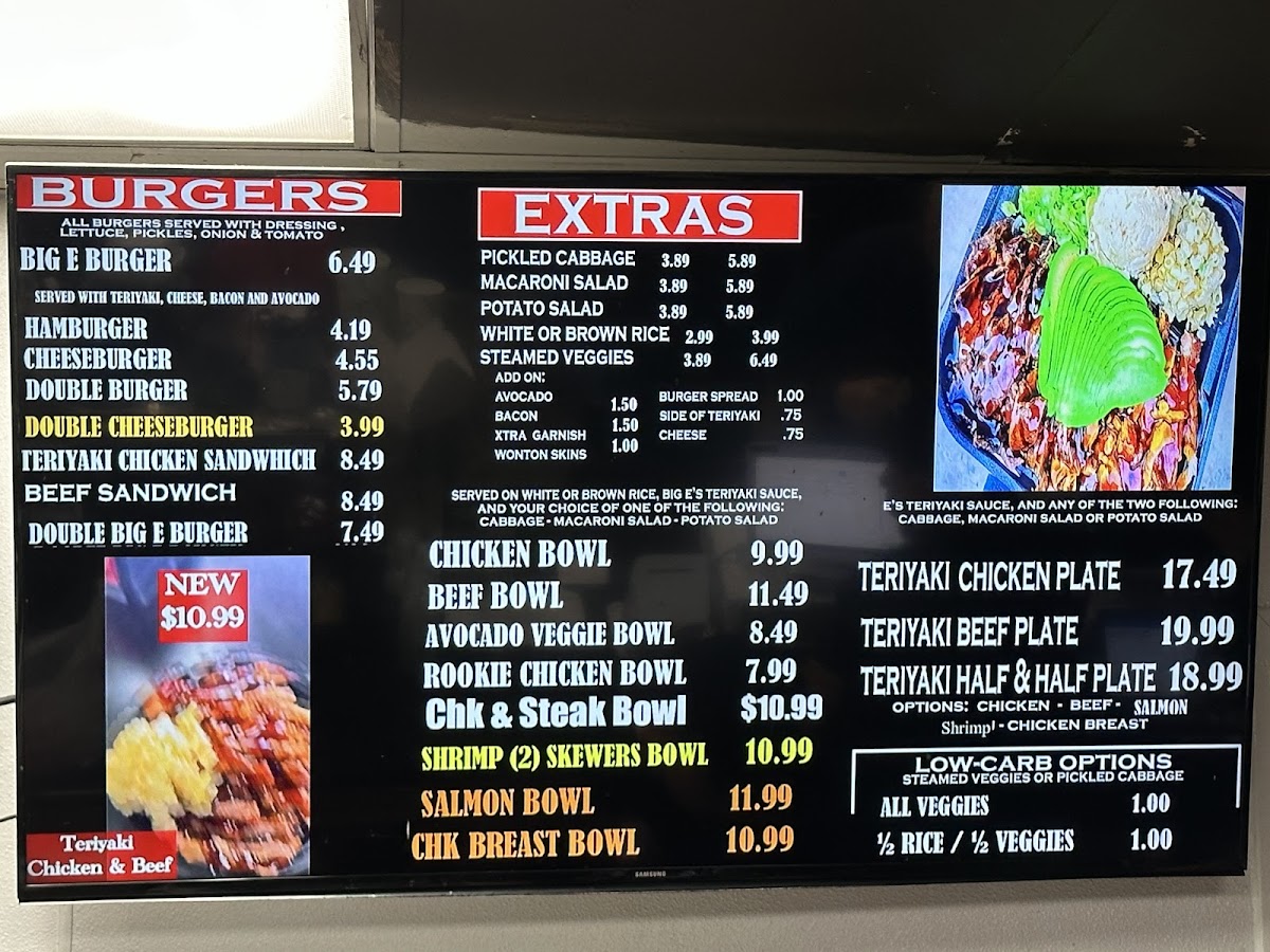 Introducing the Menu at BIG E'S TERIYAKI & BURGERS