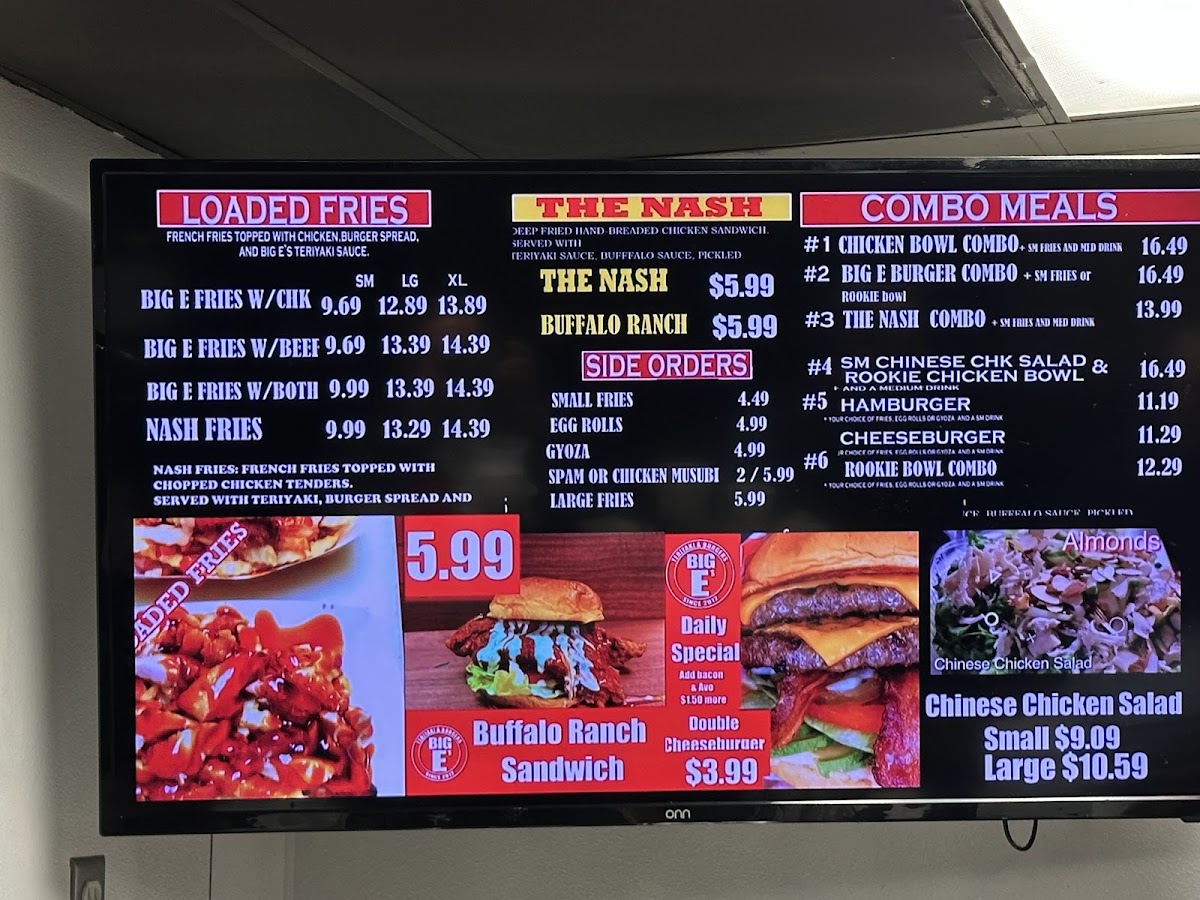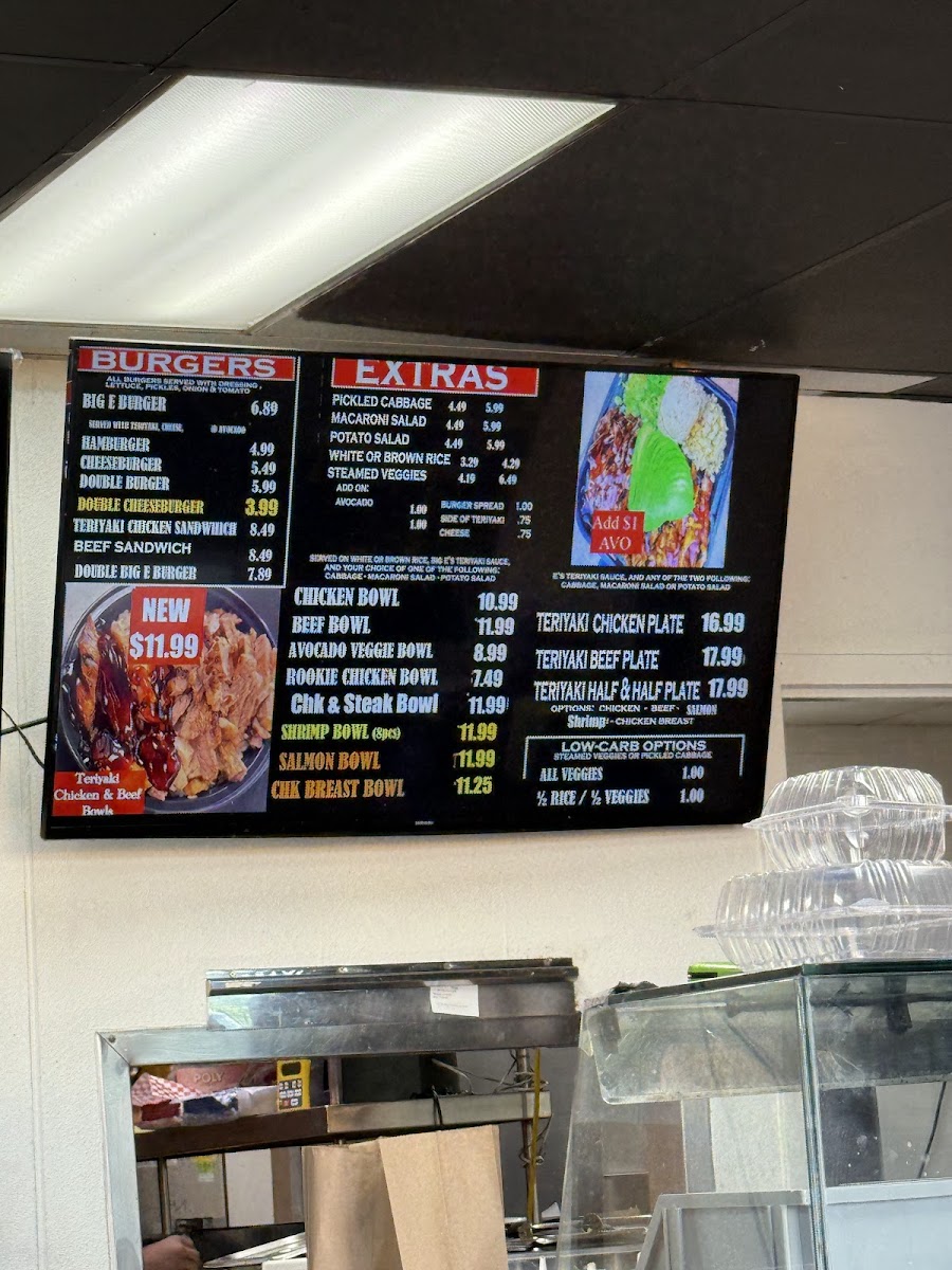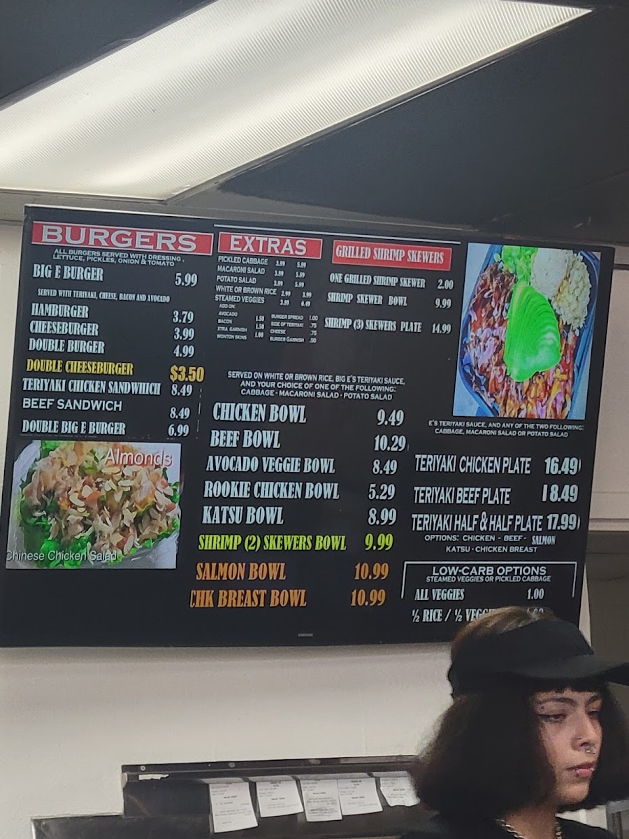 Introducing the Menu at BIG E'S TERIYAKI & BURGERS